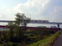 ![]() ![]() ■馬頭観音多摩川の川原への下り口にある。 ■日野の渡し記念碑 下水処理場の角に建っているもの。 立日橋の上を多摩モノレールが走っている。橋を渡ると日野宿。 |