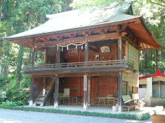 ![]() ●与瀬神社拝殿明治37年に火事で焼失し、本殿は大正3年、拝殿は昭和24年に再建されたもの。昭和の建築としては結構味わいの感じる建物でありました。 ●神楽殿 二階建てで珍しい形の神楽殿で、一階は休憩室か物置に使われている。 |