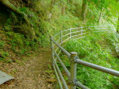 ![]() ●大乗妙典日本廻国供養塔高速の矢坪橋を渡るとすぐ右手に立っている。大乗妙典日本廻国供養塔とは六部と呼ばれる行者が全国六十六カ国を巡礼し、一国一ヵ所の霊場に法華経を一部ずつ納めた時に建てる供養塔のことだが、街道を歩いていると結構見られる。この脇を国道と別れて登っていく。矢坪坂の古戦場跡の看板が立っている。 ●座頭ころがし やがて武甕槌(たけみかづち)神社入口の鳥居前を通過する。前に白い大きな犬がいて大声で吠えて、グルグル回転していて、うるさいというか柵の隙間から飛び出してきたらどうするかと恐ろしさも感じる。この先は左側が崖で山道となっていて、昔目の見えない座頭が転がり落ちて死んだという急坂になっている。 |