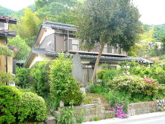 ![]() ★脇本陣跡明治天皇御小休所址の碑で、普通の民家で植栽の中に建っている。脇本陣だった笹屋跡 ★本陣跡らしき家 街道案内図で本陣があったと思われる位置に存在する建物。この先定石通り宿を出るとき左右どっちかに曲がる。ここは右に曲がり角に宝勝寺がある。 |
