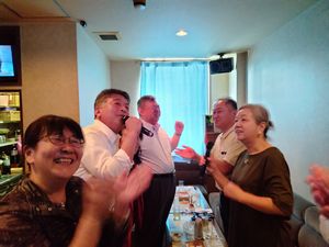 | 2022年 3月末を以て、田中基康 様、金澤満章 様(いずれも高32回生)が退職されました。両氏の永年のご労苦を ねぎらうため、「励ます会」を開催いたしました。 |