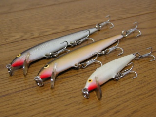 軽くて遠投性に欠けるので最近はあまり使ってないけど、昔は上のシルバーのフローティングをマグプラス250SGでビシバシキャストしていた。でも遠心ブレーキのアンバサダで投げるのは結構つらいんだよね。そうだ、今度1500Cでキャストしてみよう。![]() 全てのRaparaがスイムテストされているのは有名な話だが、フローティングを買うとリップを削ってあることが良くある。フツーは不良品みたいでなんだかイヤになりそうなんだけど、Raparaの場合はなんだか「当たり」のような気になる。リップを削ってある方が手作りの様な暖かみを感じて、なんだか嬉しい(^^)。下のF9はリップが削ってあるんだけど、分かるかな?