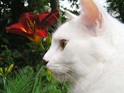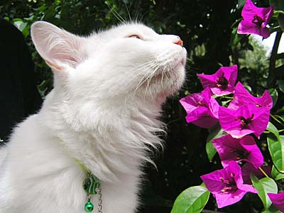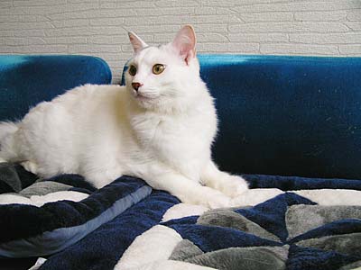 ボクがペンションで生活するようになったのは平成15年の10月デシタ。 ハッキリと記憶してませんが、ボクが生まれたのは15年8月だったと思いマス。 それまでは野良で母と兄弟3匹でくらしてたンデス。 ペンションの近くでボク達を生み、育ててくれた母はとても優しく勇敢な母デシタ。 生まれて2ヶ月ほどになるある日。 乳だけでは腹を満たさなくなってきたボク達を引き連れて出歩くことになったのデス。 「恐る・オソル」見通しの悪い道を歩いていた時のことデシタ。 突然、目の前に車が現れたチマッタンデス。 ボクはビックリして一目散に草ムラに逃げ込んだのだが、妹は恐怖のあまりに、 身がすくみ、逃げ遅れチャッタンデス。 それを見ていた母は車の来る方に進み出て、道路の真ん中に立ちはだかり、 その車を止めたのデス。 そして、妹がなんとか逃げ込んだのを確認してから、母もその場を立ち去ったノデシタ。 車を運転していた人は母の行動に驚いたらしく、 しばらくの間車を止めて、ボク達の方を呆然と見ていたノデス。 そのあと、外の怖さと空腹に耐えながら「食べ物」を探し求めて歩き続けているうちに 、すっかり陽は落ちてシマッタデス。 母が「ネグラに帰るヨ。」とボク達を促し歩き始めたその時デシタ。 ライトをつけた車がボク達の方に向かってキチャッタンデス。 「エライコッチャ!」ライトの眩しさに目がくらみかけたが、 必死で竹ヤブの中に逃げ込みマシタ。 又もや、モタモタしている妹を見ていた母は、 今度は首をくわえて一目散に逃げ難をのがれたノデシタ。 車を止めた運転手は窓から顔を出し、 「何だ!昼間のネコじゃないか!」とつぶやいたノデス。 ボクは竹ヤブの中からそっと顔を上げ見たノデス。 「ボク達を驚かすとんでもないヤツ」の顔を・・・・・。 それは、何と、昼間の「アイツ」ではないか!!! そして今、あの時の「アンチクショウ」がまさか旦那さんに なろうとは夢にも思いませんデシタ。