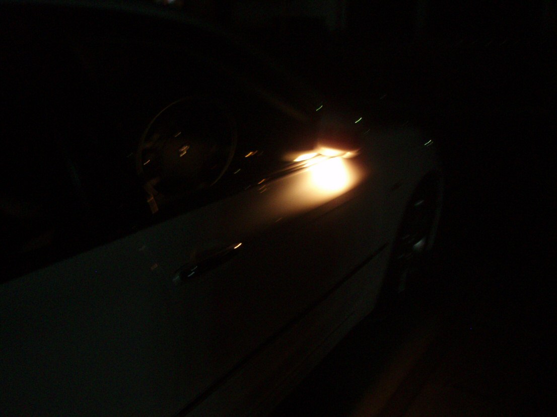 ウエルカムライト キーを持って近づくとミラーしたのライトが光って迎えてくれる。またドアを解錠したときも。 なんとなくうれしい装備。 |