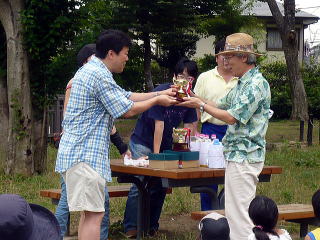 個人優勝は早川民男さん(右側) 団体優勝(近藤夫妻、和田さん、江上さん)