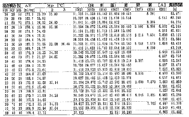 融 点 :SOS=10〜20%の範囲で融点が2つ観測された。SOSの混合