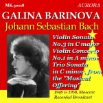 当ディスクに聴く3曲もすべて40歳頃までの録音であり、トリオ・ソナタにおける豪華な共演者を見ると、当時のバリノワの評価の高さが分かる。実は、バリノワはほぼ同時期にトリオ・ソナタニ短調BWV1036(現在ではC・P・E・バッハ作とされている)をロストロポーヴィチ、ニコラーエワ(もう一人のヴァイオリンはラファエル・ソヴォレフスキー)とレコーディングしてLP発売されており、BWV1036もモスクワ放送によるラジオ放送用録音だったようだ。当時のソ連では、放送録音とレコード発売のための正式なセッション録音が明確に区別されていなかったらしく、当レーベルのリヒテルによるシューマンのピアノ協奏曲(MK.30007)も放送録音をLPに転用して発売している。レコードの印税収入が演奏家には渡らず国庫に入った可能性もあり、LP発売の可否は、演奏家本人の意思とは無関係だったのだろう。