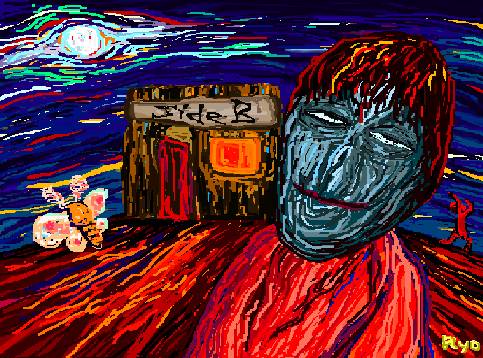 ダウンロードありがとうございます。 早速気持ちが悪くなった方もいらっしゃると 存じますが、それをいったら ムンクやゴッホなんかはどうなってしまうのでしょう。 自分はアクリルなどでこういうのを描いていたのですが、 CGは初挑戦です。 マウスだけで2時間ぐらいでかきました。 とても目が疲れました。 アナログな自分にはきついです。 しかし、CGというのは絵の具とちがって 発色がとても鮮やかです。 もっと ”イヤ”さをだしたかったのですが、 なんかすっきりしてるように思えますが さて。 次回。 満月の夜。 時間軸がずれて なまぐさいそよ風が 川面から吹いたら また逢いましょう。