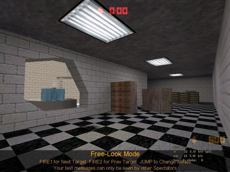 右から侵入した1階フロアーです。 手前のタンスと向こう側の砂袋で対じして戦いますか?