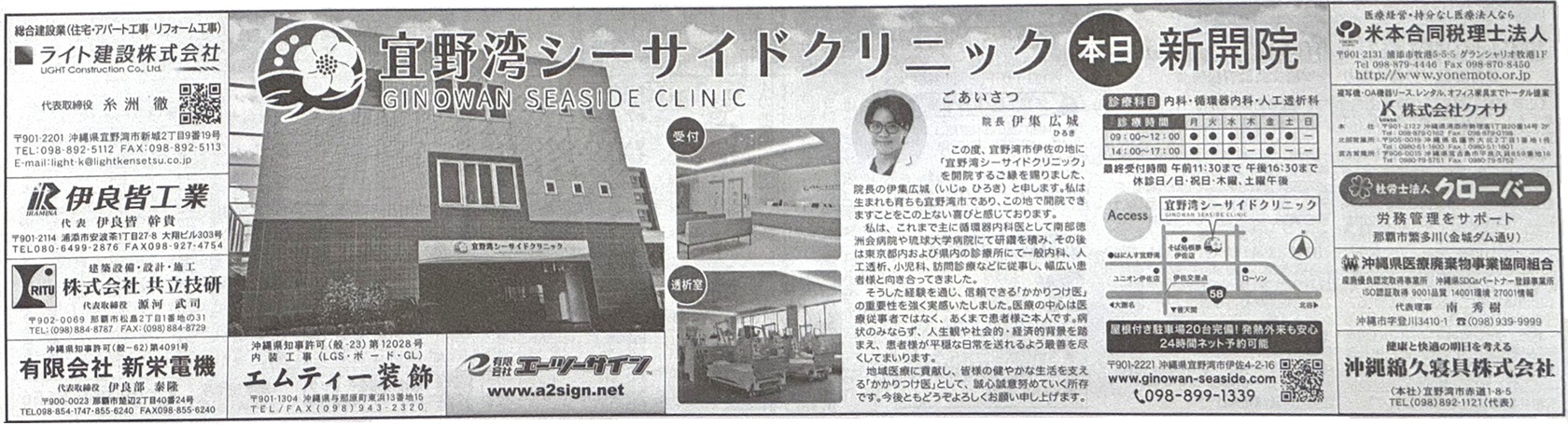 宜野湾シーサイドクリニック|宜野湾市伊佐にある内科・循環器内科・人工透析科のクリニックです。