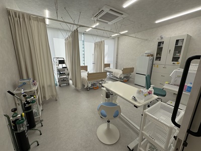 | 受付から見た待ち受けのフロアです。 | 処置室です。 | |