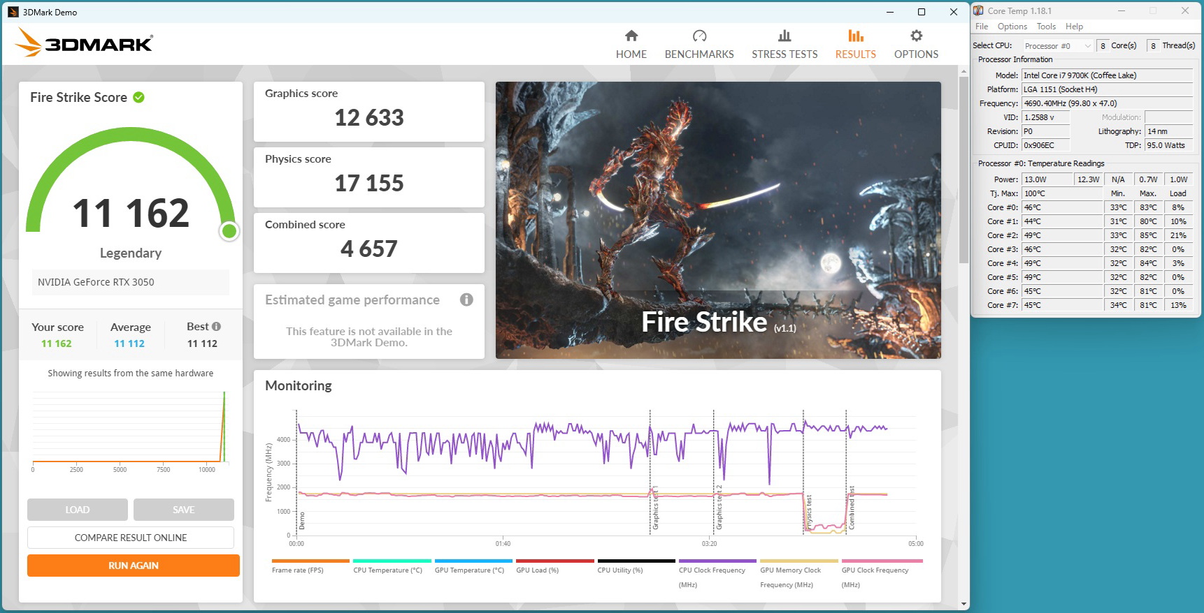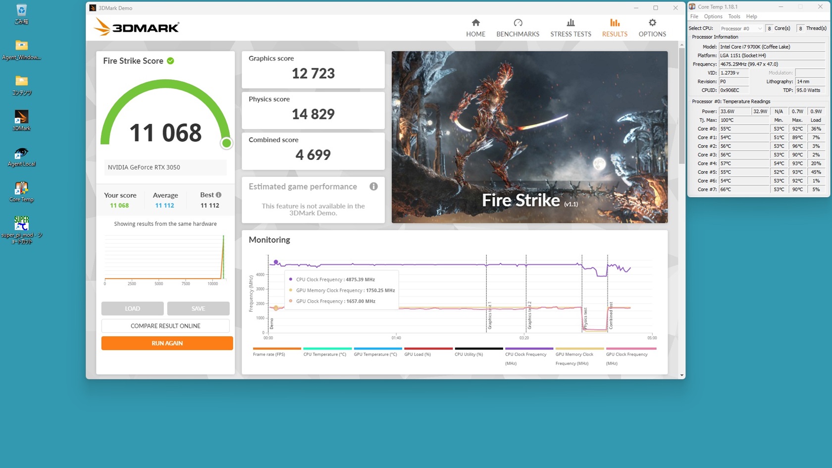 | ※i5-9500とi7-9700Kの差は、Physics Scoreで顕著ですね。 (CPU性能差) | |