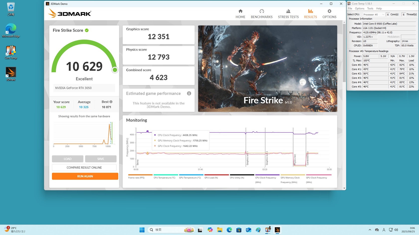 グリス交換後にWindowsの電源設定をバランスに戻して測定です。