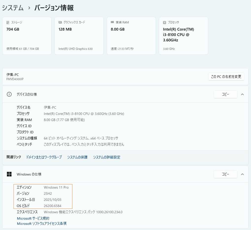 2025年 10月 4日 Windows11 Version 25H2 リリースあれこれ💦