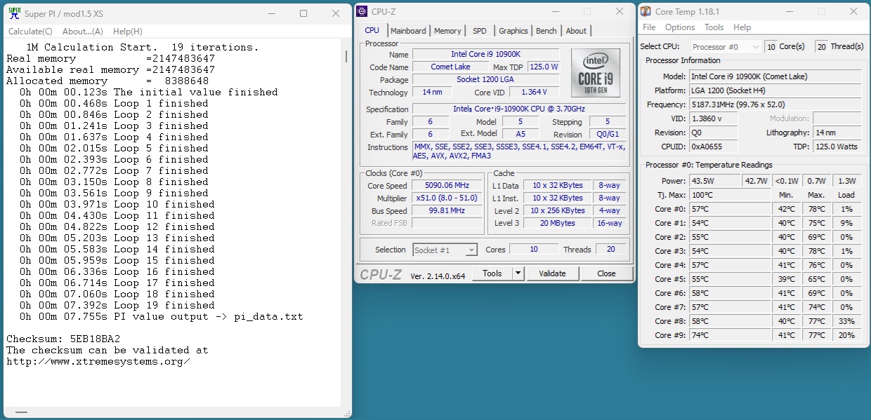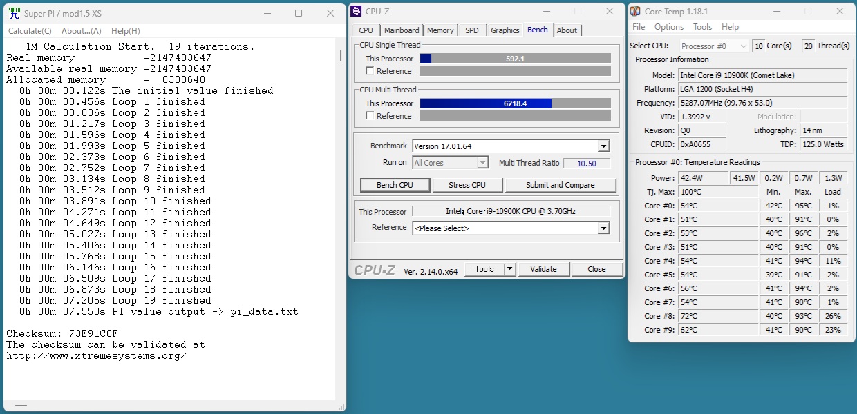 CPU-Zベンチマークを走らせてフルパワーのコア温度測定です。