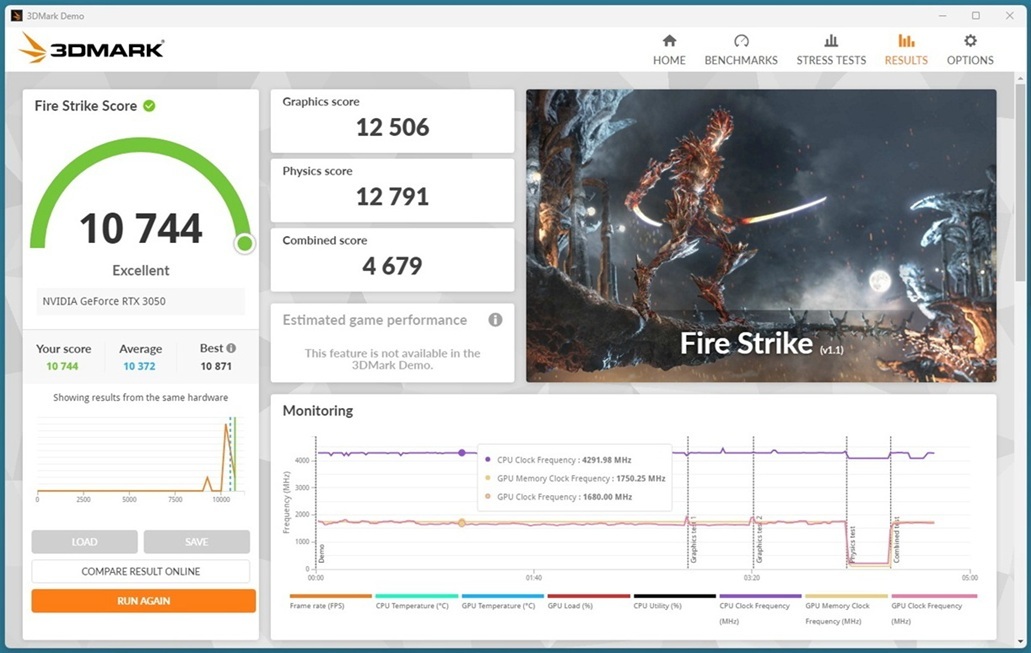 FIRE-STRIKEベンチマークスコア 10774 Excellent