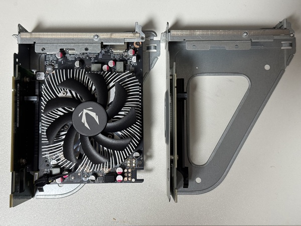 | ライザーカードにグラフィックボードを装着してゲーミングPCに仕上げました。 | |