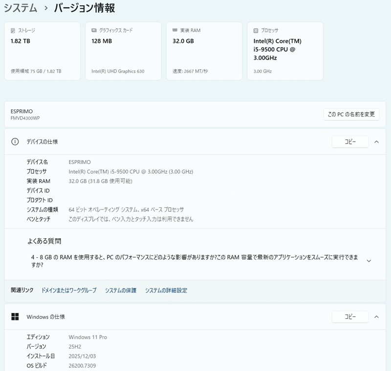 2025年 12月15日 富士通製 中古ESPRIMOスリムデスクトップPCあれこれ