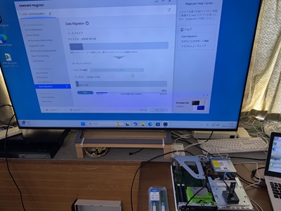 | M.2SSDのクローン作業です。 | SAMSUNGクローンソフトを使います。 | 2.5インチ500GB SSDから2TBのM.2SSDに換装です。 | クローンで容量を増やしました。 ※2TB M.2SSD装着です。 |