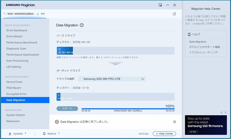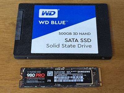 SAMSUNGのクローンソフトでWD500GB SSDをSAMSUNGの2TB M..2SSDにアップグレードです。