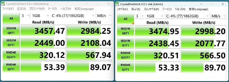 換装したSAMSUNG 980PRO M.2SSD 2TBの速度です。