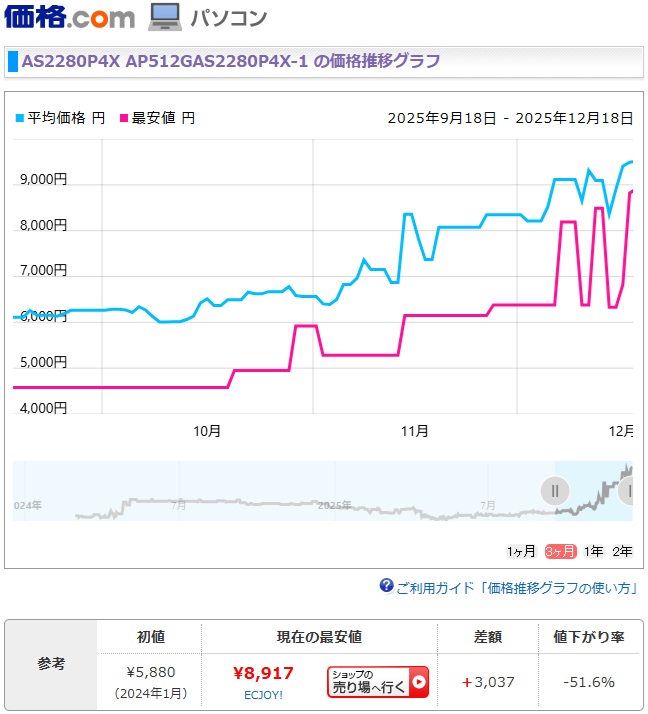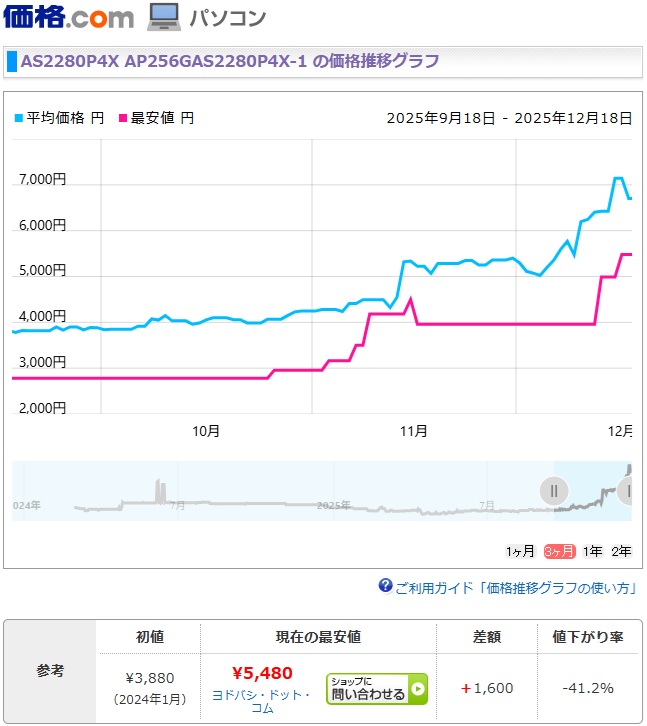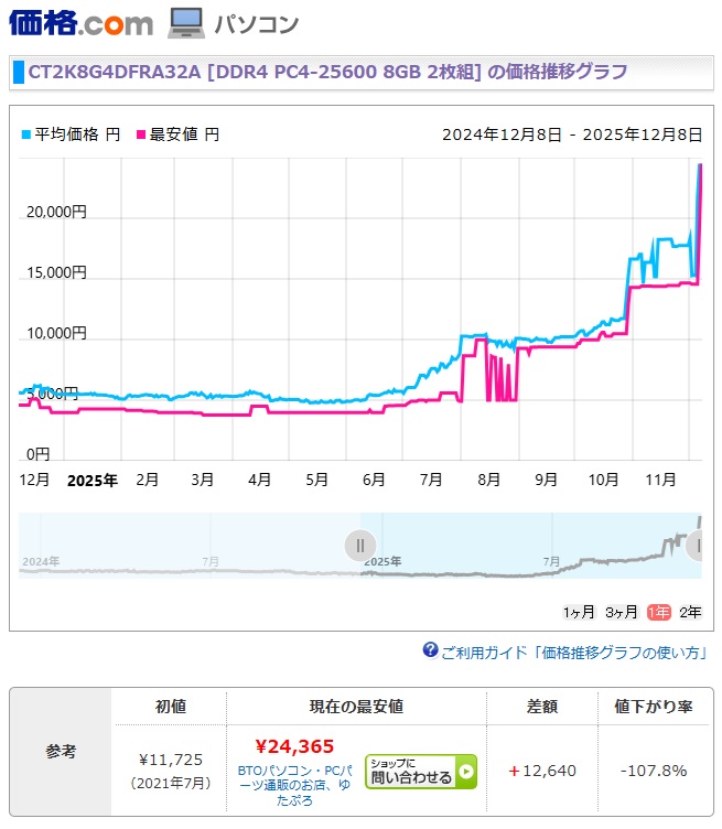 2025年 12月 8日 DDR4メモリー高騰