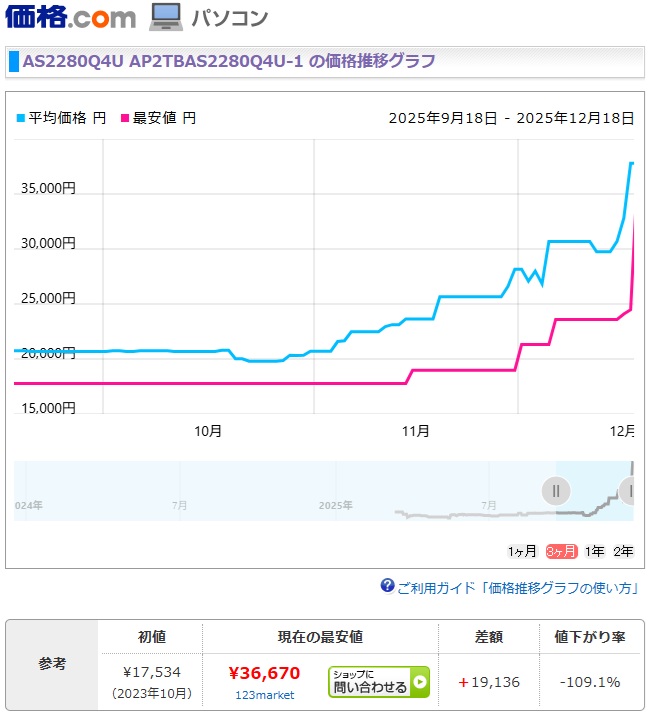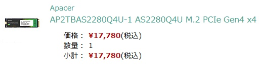 M.2SSDも3割アップですね💦