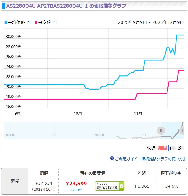 BMOは、は、最安価となったM.2SSDを多量に収集した。