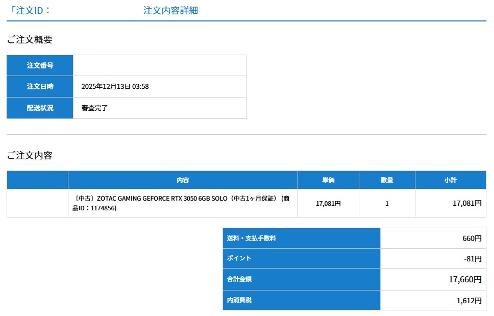 大晦日に最後のRTX3050グラフィックカードが届く予定です。