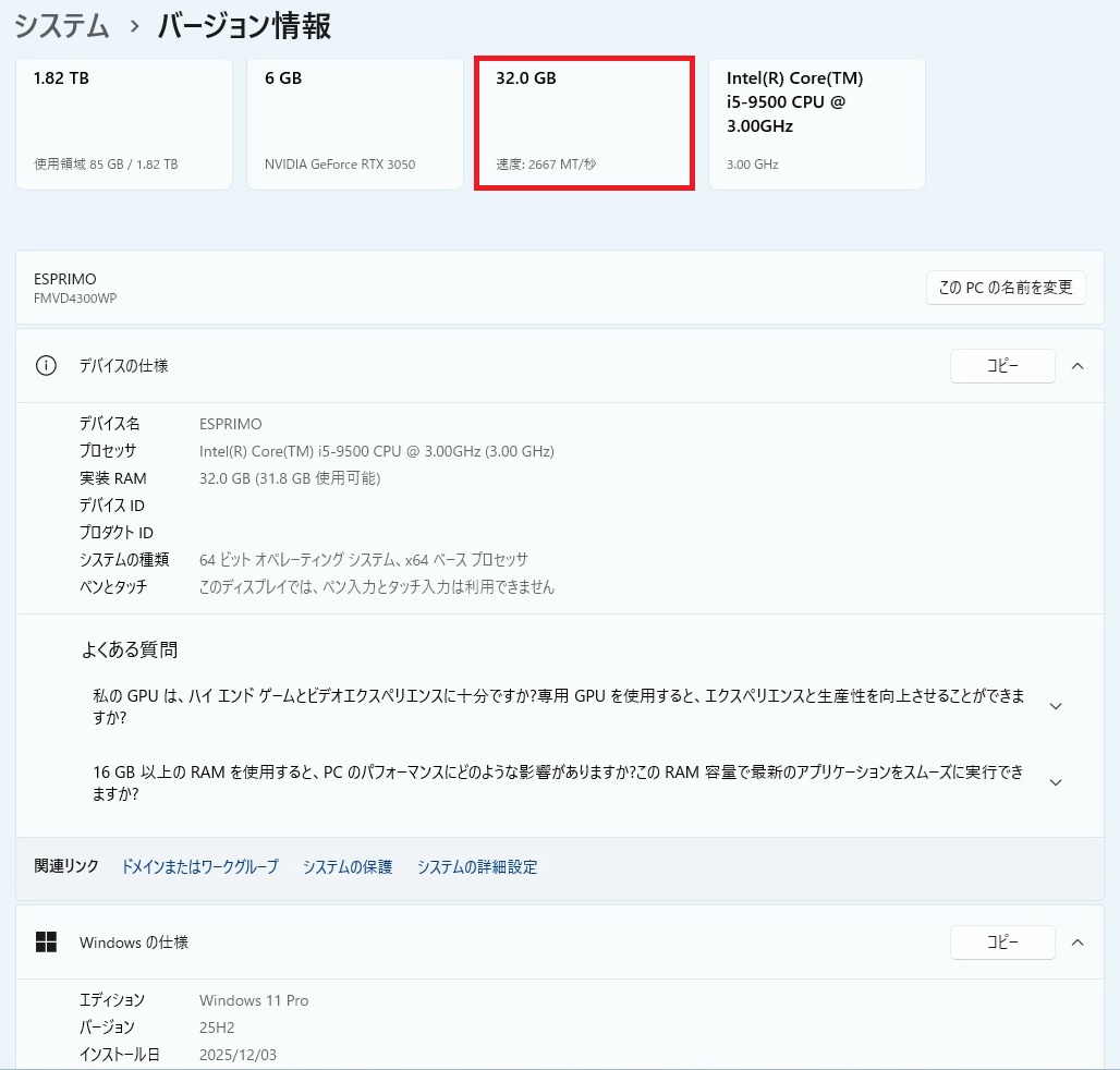 2025年 12月14日 DDR4-3200を試す