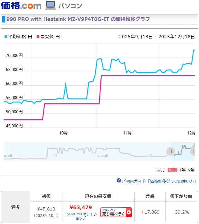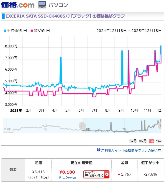 最近のメモリー価格