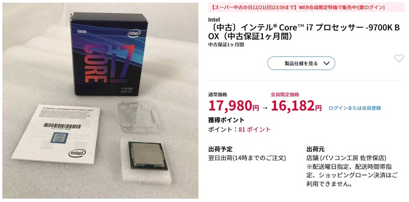 i7-9700K CPUを¥8,350円で入手と脳内計算💦