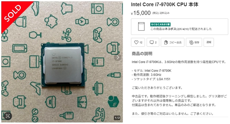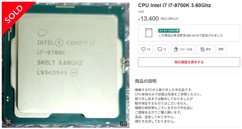 実際にメルカリで入手したi7-9700K ¥13,400円