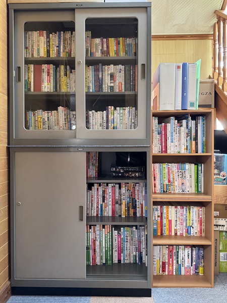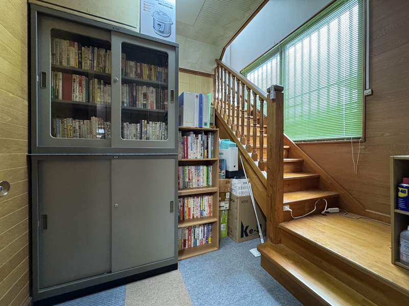 | 2階から3階に上がる階段場に書庫を確保です。 | |
