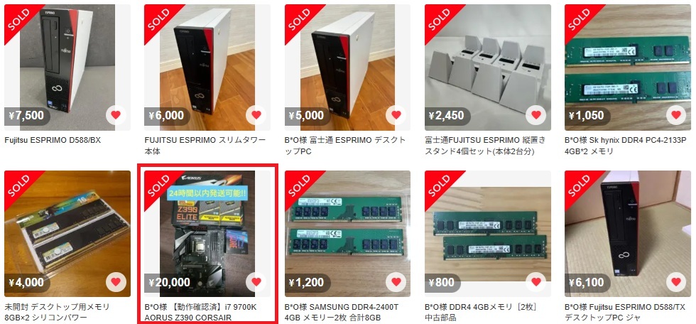 約2年間で収集したメルカリの中古PCリストです。(※含むDDR4メモリー)