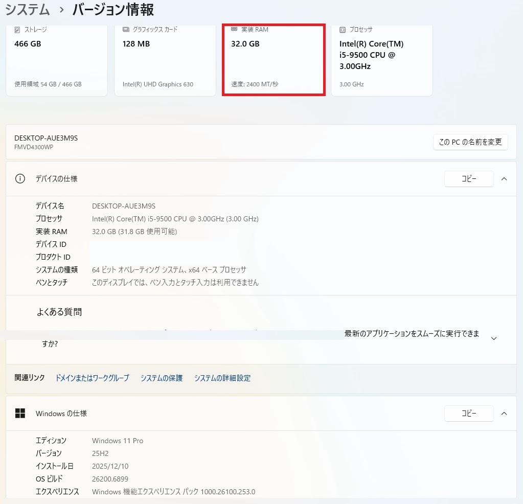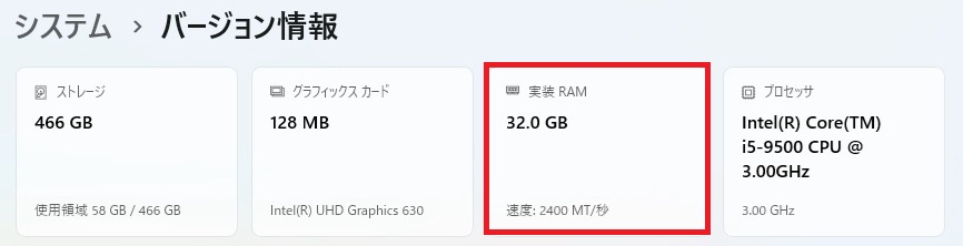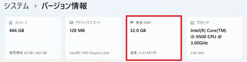 DDR4-2667 32GBを確認💦
