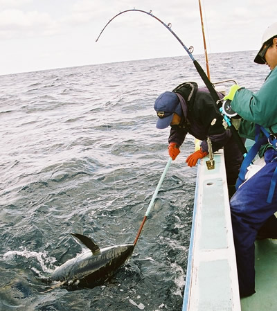 止まっては決して活きられない、その最高の泳ぎを追及した紡錘形は、彼らの定めと共に、キャプテンのギャフが打ち込まれる。