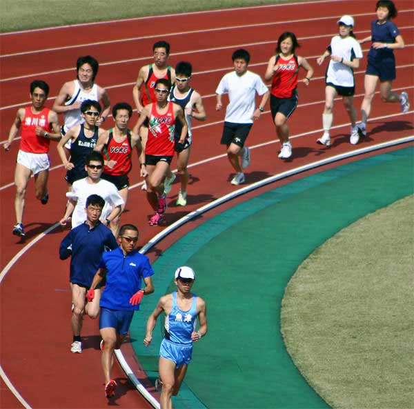 スタート後、何人かが飛び出した。そして3番手くらいに大集団。福江がいる。自分はゆっくり。大集団と20mくらいの差。出海が横にいる。16'37ランナーだ。ちょうどいい。出海の後ろにつく。あせる気持ちを抑えて最初はゆっくり行こう。無理に追いかけない。