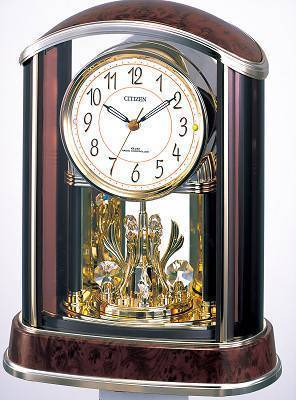 参考上代(税抜)¥15,000シチズン電波置時計パルアモールR658《4RY658-023》●一方向クリスタル回転飾り付一方向に回るクリスタルの回転飾りが付いた豪華な電波置時計。印刷箱:282×184×348 本体:縦295×横228×高134名入れ:縦20×横50 材質:プラスチック枠 原産国:中国 1400g 単2電池×1本・単3電池×2本付