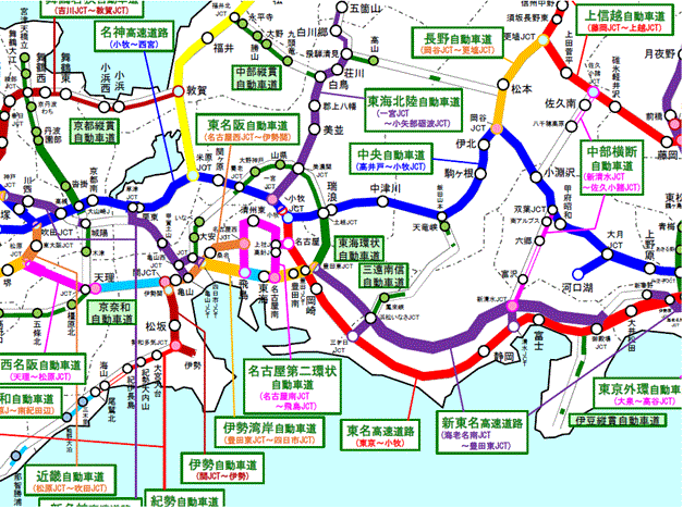 ●中部 道路名または道路上をクリックすると、詳細に移動します。 全国版に戻る