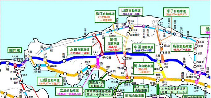 ●四国 道路名または道路上をクリックすると、詳細に移動します。 全国版に戻る