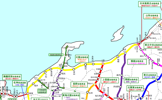 ●北陸 道路名または道路上をクリックすると、詳細に移動します。 全国版に戻る