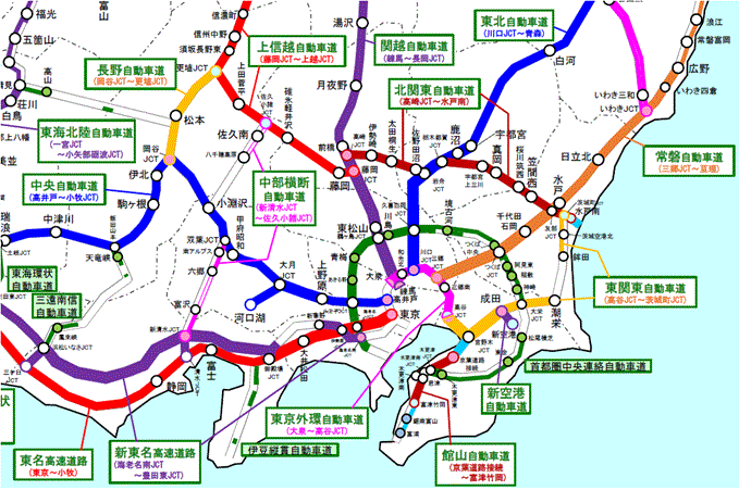 ●関東 道路名または道路上をクリックすると、詳細に移動します。 全国版に戻る
