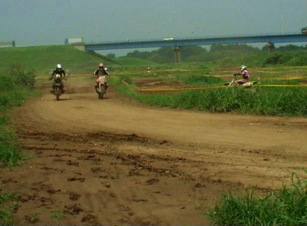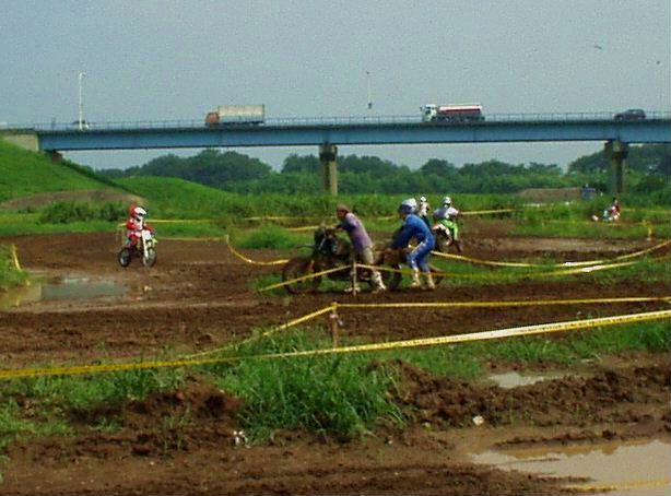 2002/8/3 ウェストポイント オフロードビレッジ 去年、GSで12時間耐久エンデューロを走った人たちの記事を、BMW BIKESで見た。 その時は、世の中には、なんて馬鹿な人たちがいるんだろうと驚いたものだった。 でも、いつの間にか、その馬鹿な人たちの仲間に入ってしまった。 1年前には考えもしなかったことだ。 § 今年のバカミーチームは、GSとKTMの混合チーム。 バカミーからは、マツモトさん(KTM)、T瀬さん(100GS)、I毛さん(100GS)の3名と、 トレールランナーズのS藤さん、他2名(すみません名前を存じません)のKTM勢。 総勢6名で、12時間を走り切るという壮大なチャレンジなのだ。 僕も出たかったけれど、骨折2ヶ月目なので、今回は自粛。 § 自宅を6時過ぎに出て、16号をひた走り、到着したのが9時くらい。 場違いなBMWのフラッグがはためいているバカミーのピットは、すぐに見つかった。 ピットにいたS藤さんに話を聞くと、今日の路面コンデョションは、 昨日降った雨のせいで、最悪らしい。 GS勢は、ノルマ1周だというから、だいたい想像がつく路面状態だ。 早速、コースの様子を見に行くと、マツモトさん、I毛の姿があった。 簡単な挨拶を済ませると、二人は、なかなか帰ってこないT瀬さんの捜索へと向かう。 そして、無事救出完了。 チームは、56台中22位の好成績で、12時間を無事完走しました。 来年は、僕もエントリーする予定です! (写真は、クリックすると、別画面で大きく表示されます) |