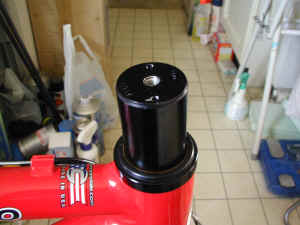 ステムと、キャップを取り付け、作業終了。 フォークを取り外さなくていいので、結構簡単でした。効果の程は、かなり固めになっていい感じです。 |
