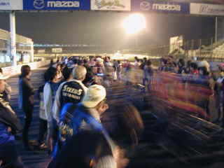 そんな交代を8回ほど繰り返し、最後の40分を笹原さんに託した。微妙な時間帯だったが、ラスト30分はピットイン禁止なので、早めに交代したのだ。ただし、ちょっと余裕を見すぎて、笹原さんに負担をかけてしまったのは失敗。交代のタイミングは難しい… とにかく、自分の走りが終わって、ほっとした。あとは応援するのみだ。 メインストレートを行くエントラント達を目で追うが、一瞬のことなので、誰が誰だか判別できない。自転車とはいえ、ロードレーサーはかなり速いのだ。なんとか、仲間を見つけ声援を送り続ける。 そして… ついに、スタートから4時間が経過した。 64周、4時間2分18秒のレースが終わった… ウィニングランが始まった。サーキット全体が笑顔に包まれた…。