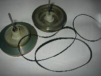 フライホイールも丁寧にアルコール清掃します。ベルトは劣化していればストックの新品と交換します。XK-009は3本です。通常はアイドラ駆動で済ませる箇所まで、ベルトドライブにしています。新品交換後は落ち着くまでテープスピードをこまめに調整します。