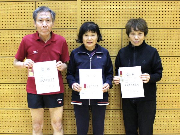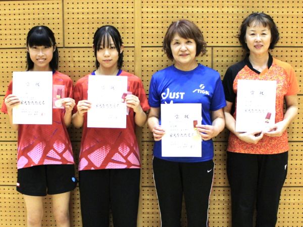 | ◆ダブルス 【男子中学】①木下結友・円山飛遊(笠岡スポーツ少年団)②垣内優佑・西浪柊斗(笠岡スポーツ少年団)③塚村陽生・小川侑太(笠岡スポーツ少年団)④宮嶋文斗・山本大結(笠岡スポーツ少年団) 【男子一般】①小川秀樹・二宗貴之(大井卓球倶楽部)②吉岡直倖・田林汰一(みたけクラブ)③櫛田真一・佐藤法治(みたけクラブ)④河田悠希・出原大也(笠岡商業高校) 【女子中学】①西尾愛望・山本つばさ(笠岡スポーツ少年団)②山守愛唯沙・塚原菜月(笠岡スポーツ少年団) 【女子一般】①今井志保・塚原瑠理(笠岡スポーツ少年団)②坂本明子・川上えり子(カブちゃん'S) ◆シングル 【男子中学】①円山飛遊(笠岡スポーツ少年団)②木下結友(笠岡スポーツ少年団)③宮嶋文斗(笠岡スポーツ少年団)④垣内優佑(笠岡スポーツ少年団) 【男子一般】①吉岡直倖(みたけクラブ)②田林汰一(みたけクラブ)③青木正博(大井卓球倶楽部)④小川秀樹(大井卓球倶楽部) 【女子中学】①西尾愛望(笠岡スポーツ少年団)②山本つばさ(笠岡スポーツ少年団)③塚原菜月(笠岡スポーツ少年団)④西崎陽子(神島外中) 【女子一般】①今井志保(笠岡スポーツ少年団)②塚原瑠理(笠岡スポーツ少年団) 【初級者】①一木優大(笠岡元気会)②坂本匡(はっぴぃかむかむ)③塩飽直紀(木鶏クラブ) |