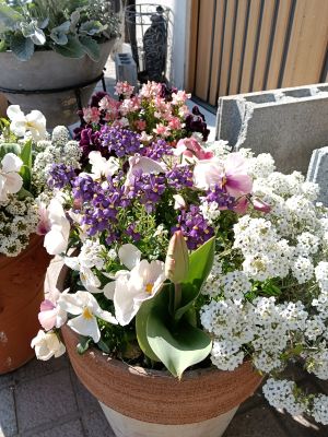 お客様で、ガーデニングがお好きな方がいらっしゃり、綺麗に咲いた花々が可愛らしく華やかです(^^♪
