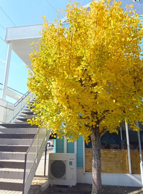 店舗前のイチョウの気が黄色く紅葉していて綺麗いです。(*^^*)